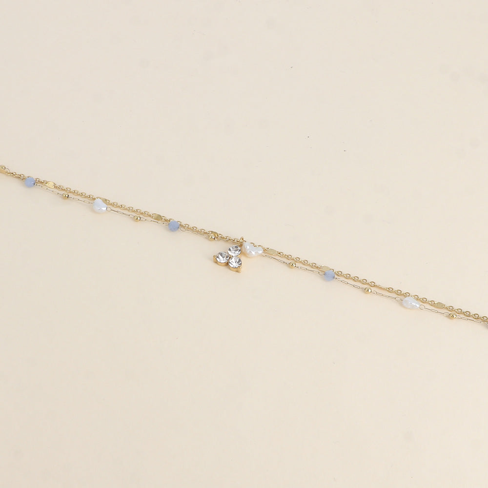 Bracelet Isabeau - 2 rangs, pierres naturelles agates bleues, perles d'eau douce et 3 cristaux (16+3 cm)