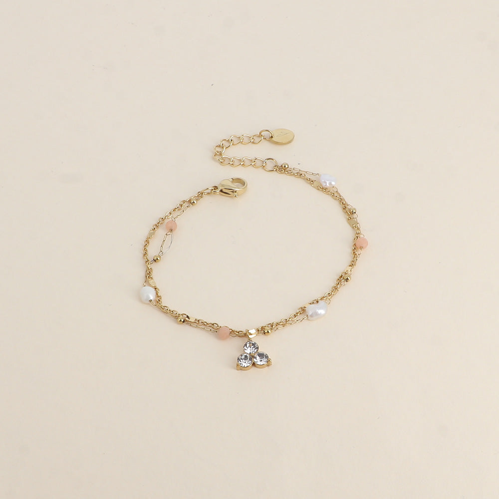 Bracelet - 2 rangs, pierres naturelles agates oranges, perles d'eau douce et 3 cristaux (16+3 cm)