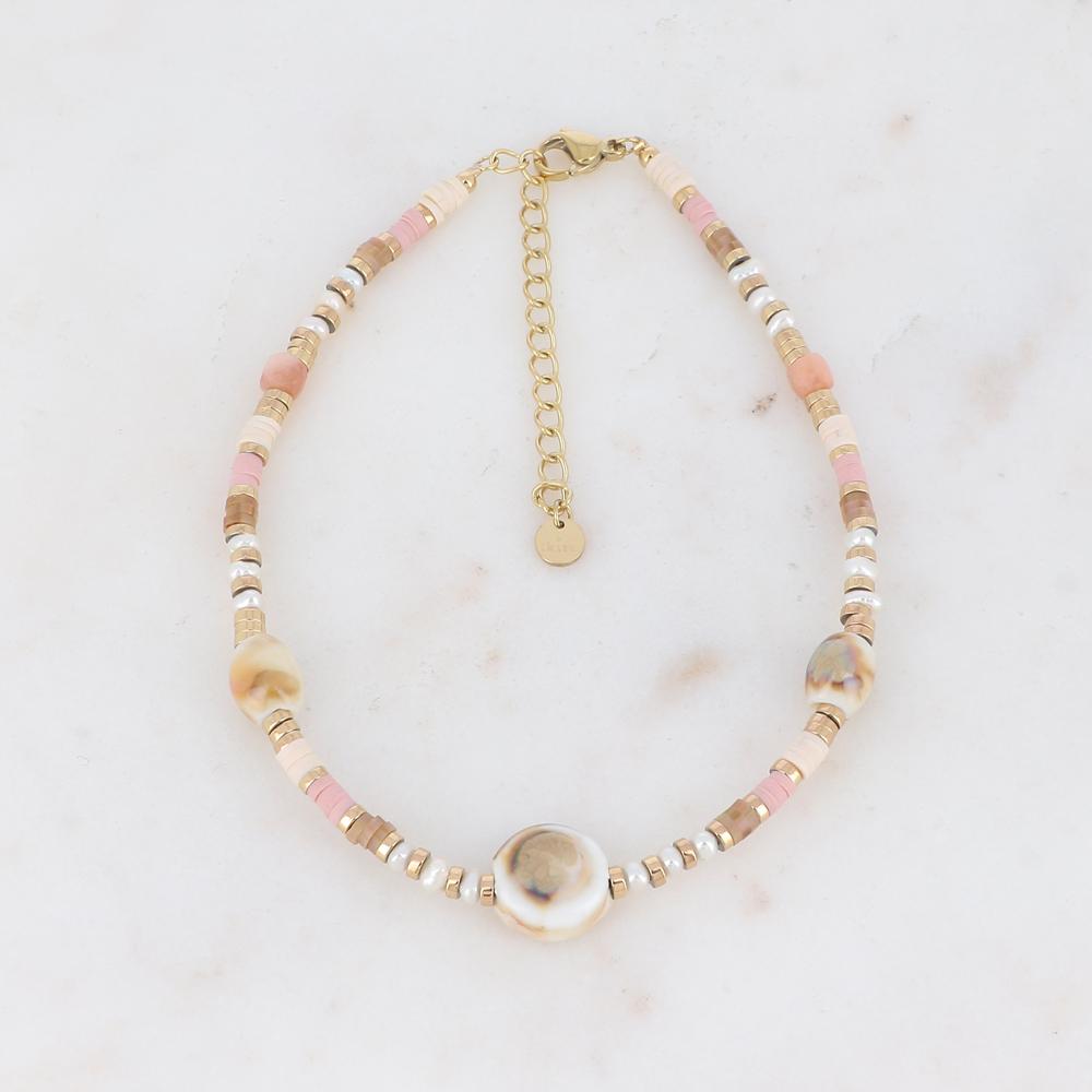 Chaîne de cheville avec pierres naturelles, céramique et perles d'eau douce (22.5+5CM)