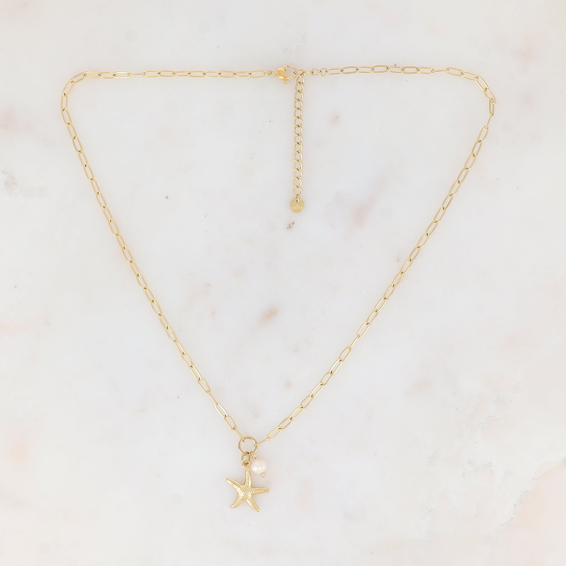 Collier en maille avec étoile de mer et perle d'eau douce (45+5CM)