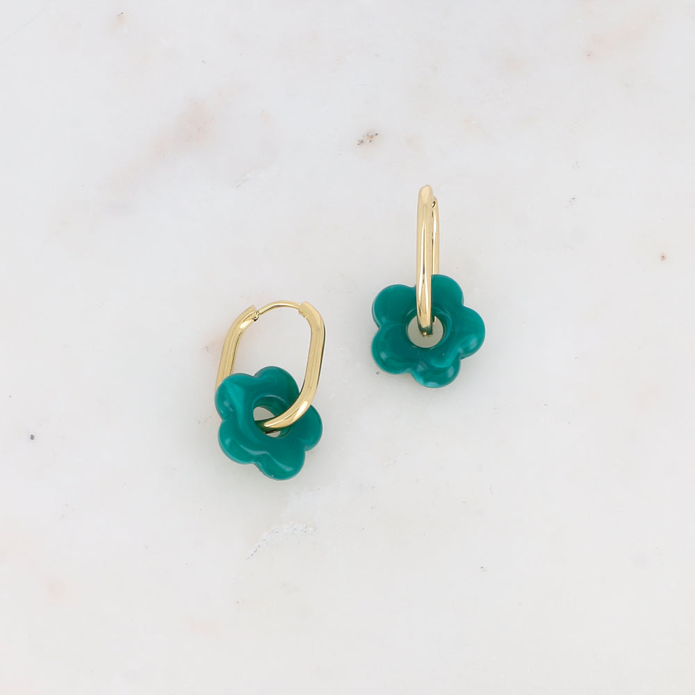 Créoles rectangulaires avec perle de fleur en acétate 1,6 x 2,8 cm