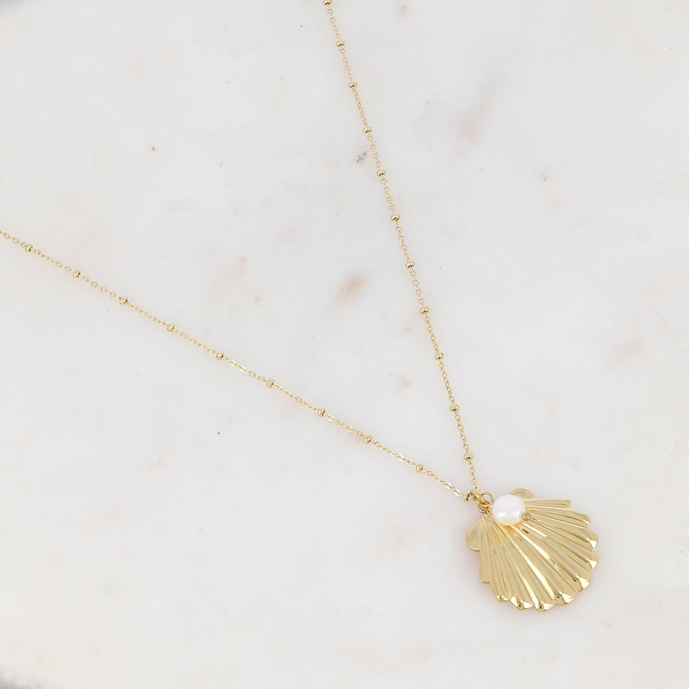 Sautoir avec coquille Saint-Jacques et perle d'eau douce (65+5CM)